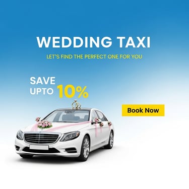 Wedding Taxi Service offers stylish, comfortable, and reliable transportation for your special day. From picking up guests to bride and groom entry, we ensure every ride is elegant and on time. Our fleet includes clean, decorated cars driven by courteous and professional chauffeurs. With flexible packages, easy booking, and 24/7 support, we make wedding travel smooth, safe, and memorable. Choose our Wedding Taxi Service to add comfort, class, and convenience to your celebrations!